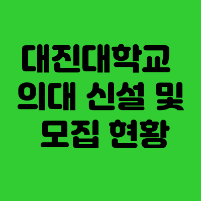 - 대진대학교 의대는 경기 북부 의료 수요에 대응하기 위해 설립 추진 중이며 신설 여부를 예의주시해야 합니다.